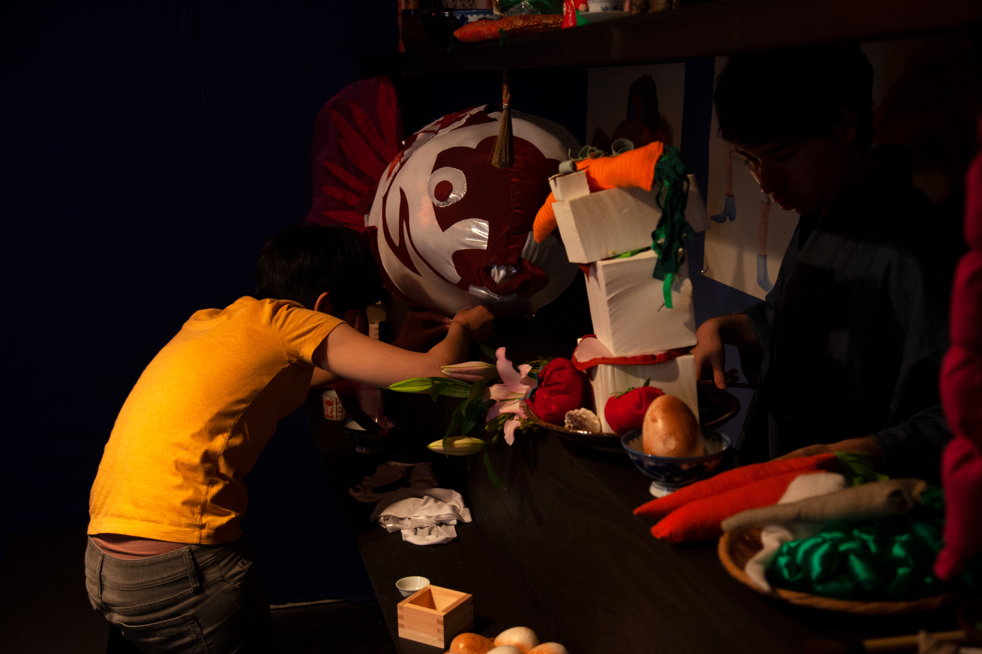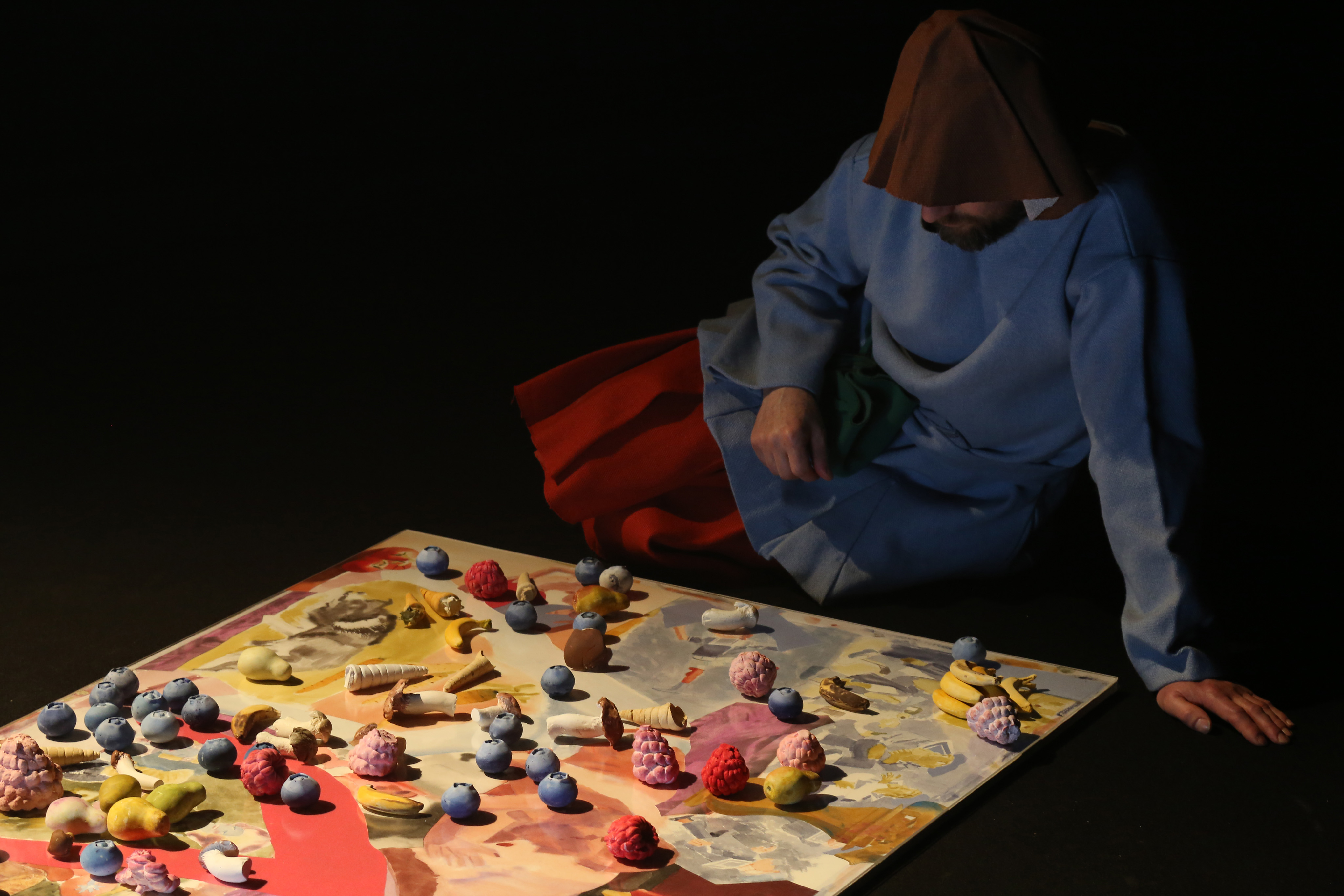 PRELUDE: A renaissance Green Grocer invites the town to a party while her Shepherd husband is away. Two old friends - a Fisherman and a Postman - get jolly drunk in a back alley Sake bar. A Punch & Judy theatre gathers the characters in their puppet alter-ego form for a showdown. MÖBIUS: A Shepherd steers a flock of sheep, banana-juggling sailors, and flamboyant 18th century hedonists off the edge of a spiral tower by playing a special board game.
